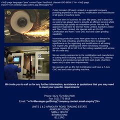 Cutting-tool-services is ranked 8,914,979 in the United Kingdom. 'Cutter Grinders Limited | Welcome.'