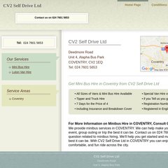 Cv2selfdrivecoventry is ranked 1,947,428 in the United Kingdom. 'CV2 Self Drive Ltd: Mini Bus Hire in Coventry.'