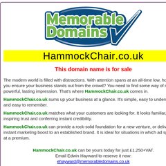 Hammockchair is ranked 4,092,573 in the United Kingdom. 'The domain name HammockChair.co.uk is for sale. Own it today. Find out how..'