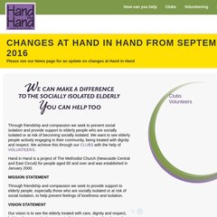 Topics: Hand In Hand, Funding, Volunteering, Weekly Clubs, and Befriending.