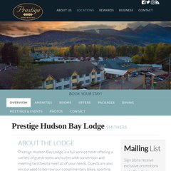 Topics: Explore Smithers, Accommodations, Dining, Meetings & Banquets, Facilities, and Hudson Bay Lodge.