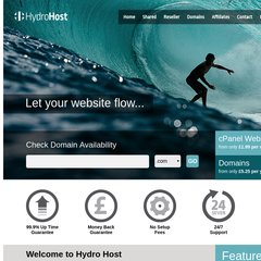 Hydro-host is ranked 1,059,902 in the United Kingdom. 'UK Web Hosting - Hydro Host - Shared Hosting - Reseller Hosting.'