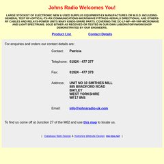 Johnsradio-uk is ranked 13,233,193 in the United Kingdom. 'Electronic Equipment Stockist - New, Used and Surplus Electronic Equipment from Johns Radio.'