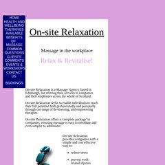 On-site-relaxation is ranked 16,626,089 in the United Kingdom. 'On-site Relaxation - corporate massage based in Scotland delivering massage to the workplace.'