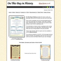 On-this-day-in-history is ranked 3,433,060 in the United Kingdom. 'On This Day in History Personalised Scrolls & Greetings Cards for birthdays, weddings, christenings, special days.'