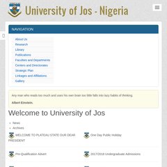 Topics: University Of Jos - Nigeria, Visitors, Alumni, Strategic Plan, The University, and Faculties And Departments.