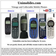 Unimobiles is ranked 1,218,632 in the United Kingdom. 'Unimobiles.com - Vintage Retro and Collectable Mobile Phones & Accessories.'